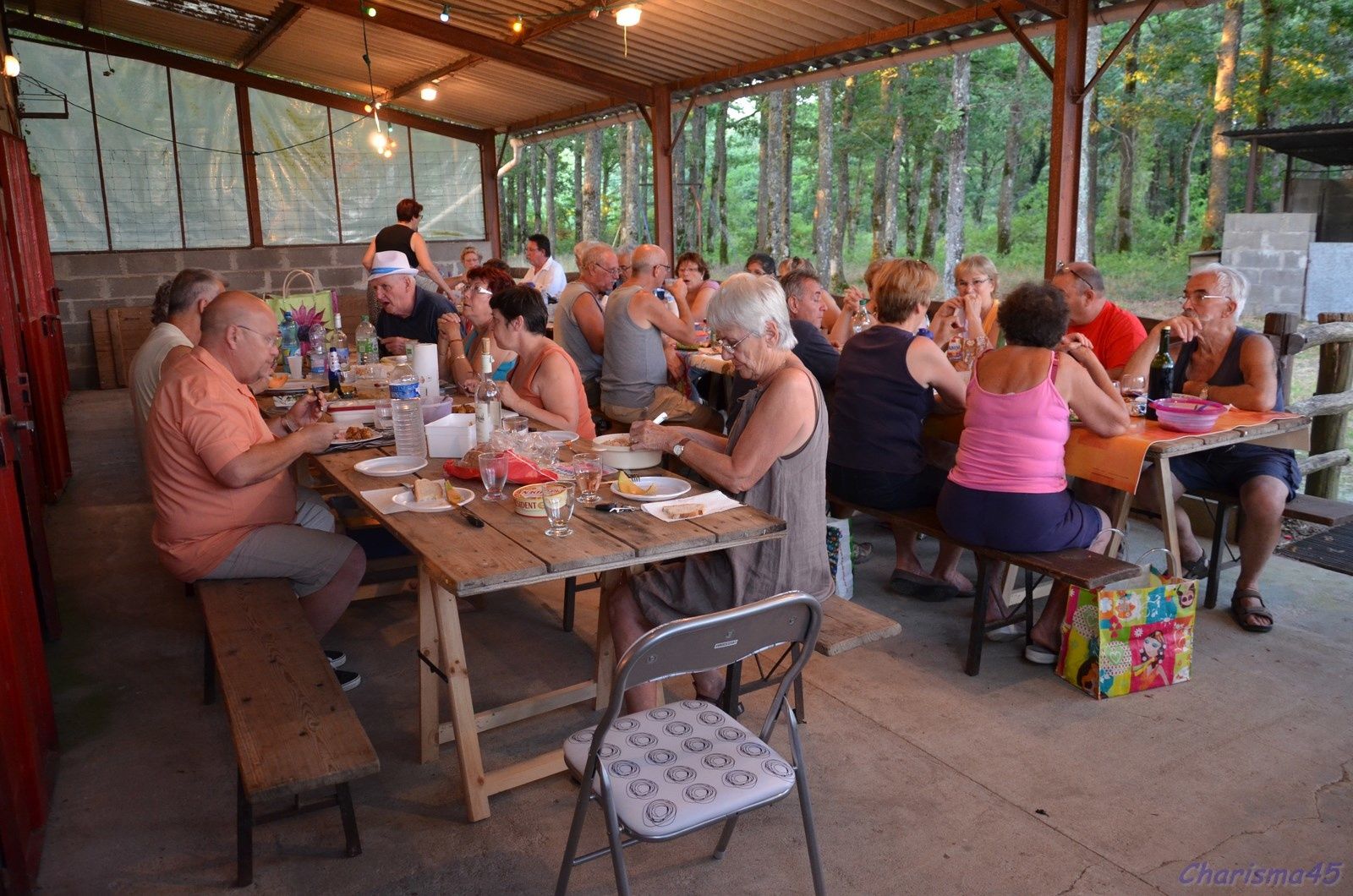 Nous prenons l’apéritif et le repas en commun sur les grandes tables sous l’appenti.