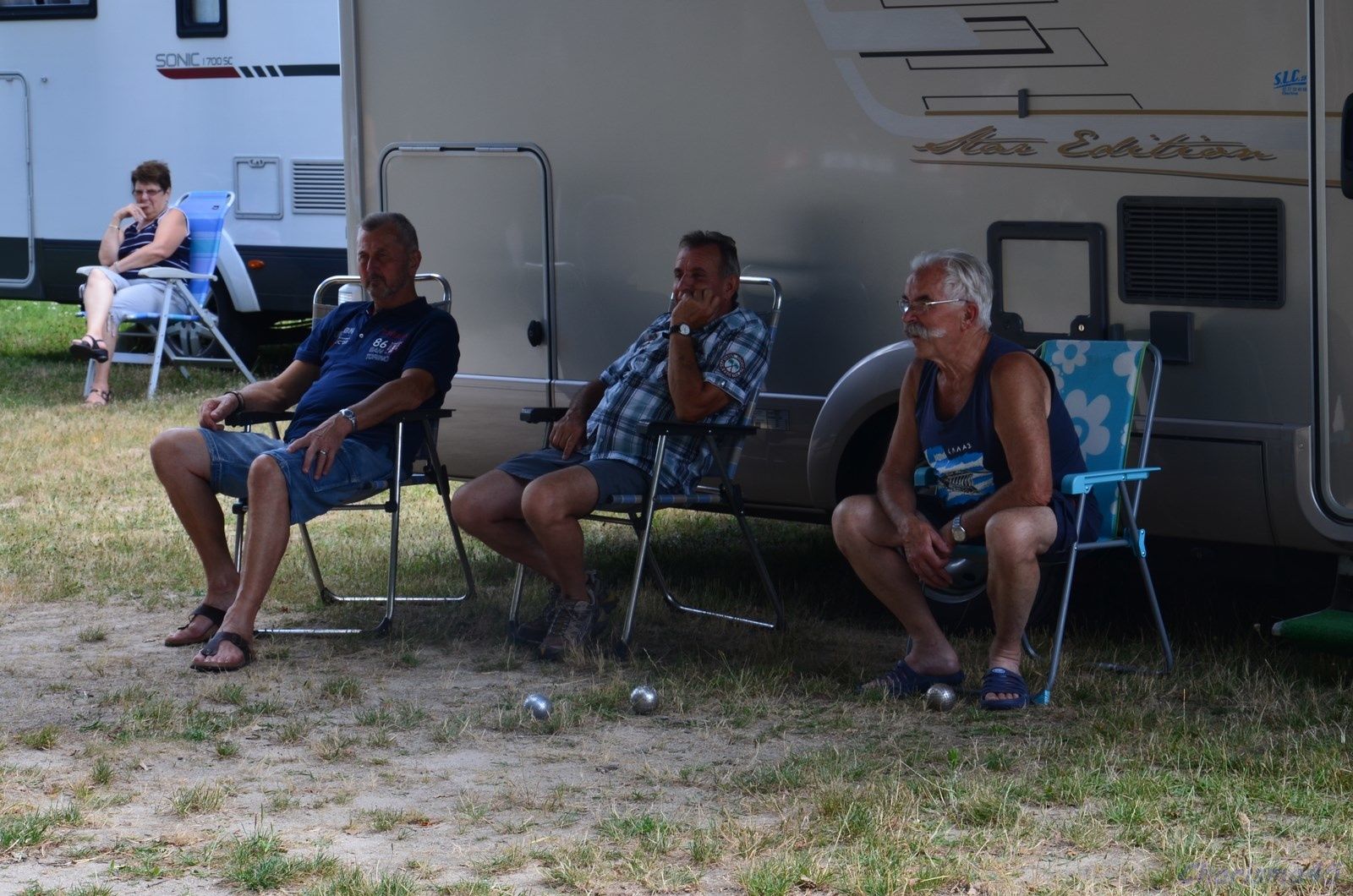 Les derniers camping-cars manquant sont arrivés. Nous sommes maintenant 26 équipages dont 3 équipages du club de Saint-Amand-Montrond. Le club de Saint-Amand a très sympathiquement accueilli les adhérents de notre club participants à la sortie sur une l'étape du Tour de France cycliste. A midi, évidemment apéritif puis passage au barbecue pour le repas.